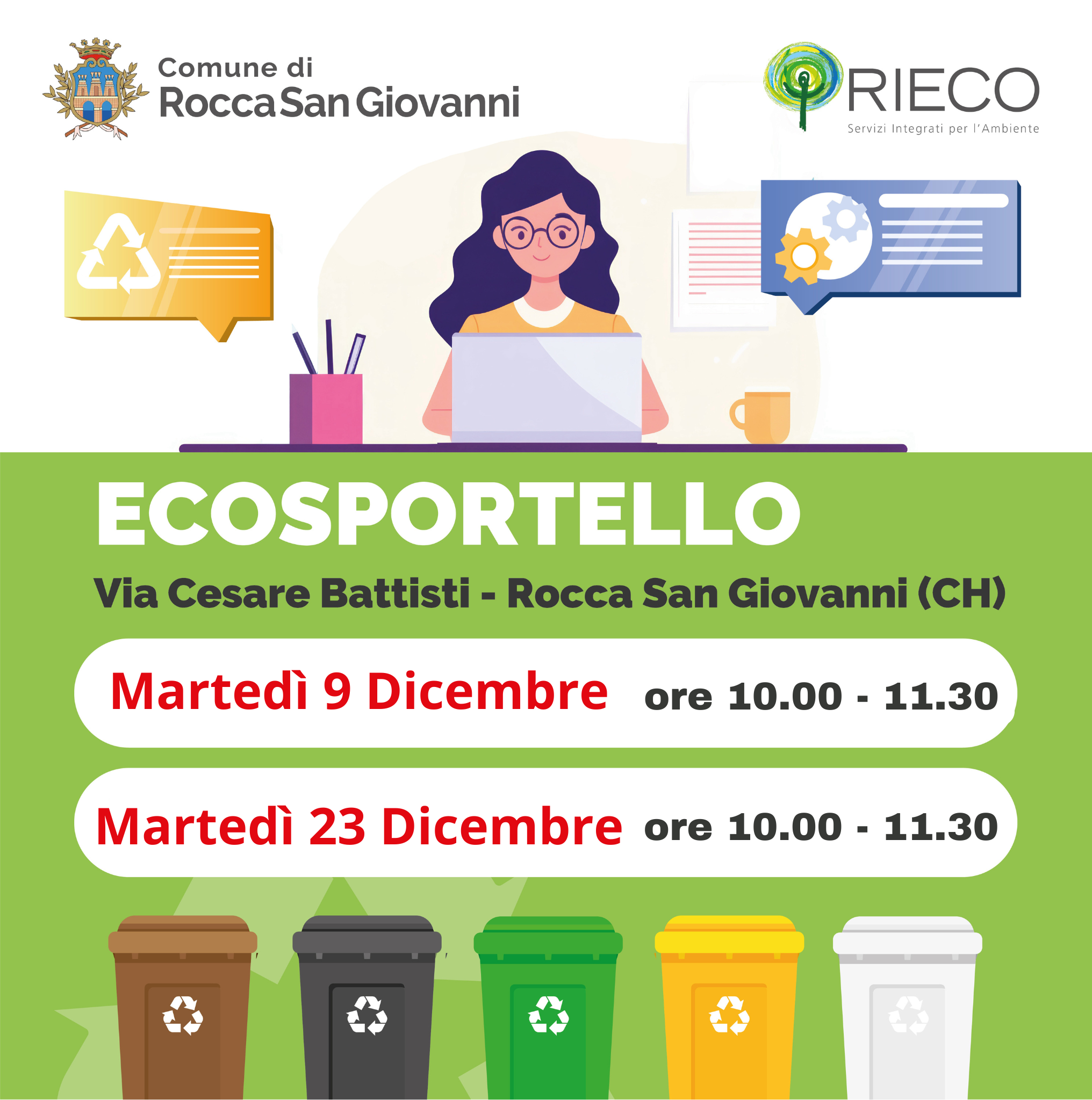 Si comunica ai cittadini residenti che l’Ecosportello della Rieco S.p.A., situato presso la nuova sede nel locale della Protezione Civile in Via Cesare Battisti, nel mese di dicembre osserverà i seguenti orari: